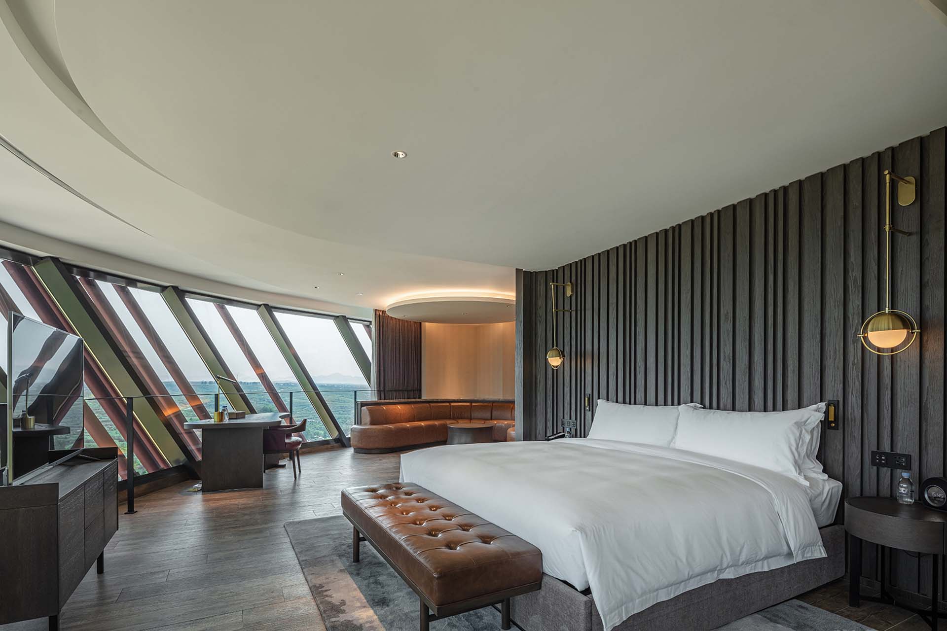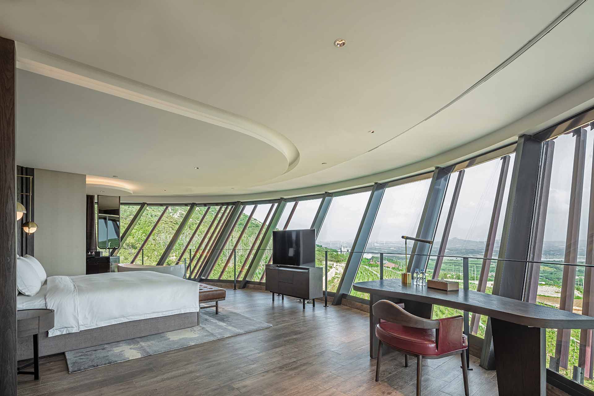 Runaway Cow is a pioneer in Winery Tourism in China. With its striking architecture and breathtaking location nestled in the hills above the vineyard-studded Shandong Peninsula Valley, Runaway Cow is one of China’s most beautiful wine resorts. The estate features a total of 47 rooms, including 25 guestrooms and 22 suites, all offering stunning views of either the vineyards or Qiu Mountain. Surrounded by 500 acres of pasture land, our concierge can arrange horseback explorations for guests. The architecture and interior design of Runaway Cow deliver a sophisticated representation of the valley and landscape’s fluidity and romantic charm. The building’s organic forms and flowing lines mimic the gentle contours of the surrounding hills, seamlessly blending with the picturesque environment. Expansive windows frame stunning views, allowing natural light to flood the interiors and create a sense of openness that reflects the expansive beauty outside. The hotel interior seamlessly marries the property’s natural surroundings with an understated design, featuring a harmonious palette of soft earth tones and natural materials that evoke warmth and intimacy. We strive to create an immersive wine experience by integrating superb wines, Michelin-star dining, and boutique accommodations. Take a break from your fast-paced, high-pressure everyday life and enjoy the beautiful vineyards as we guide you on an adventure to discover Chinese wines and uncover new sensory experiences. Runaway Cow is the perfect place to truly “Recover and Rediscover,” offering plenty of activities, including vineyard tours, mountain biking, alfresco dining on the terrace, or simply relaxing by the vineyard-facing terrace with a book from the library.