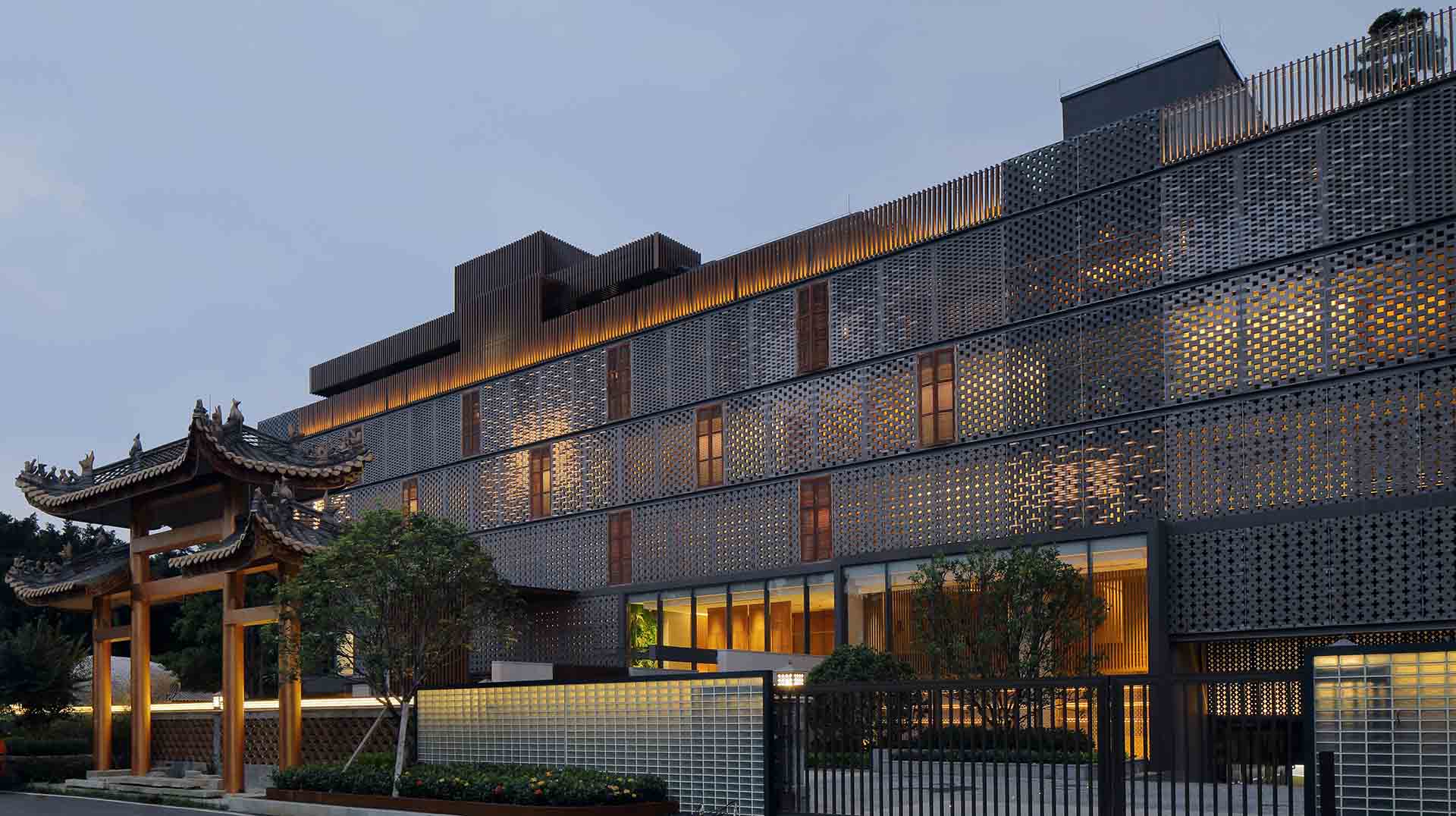 The Lantern Art Space is located in Shunde Fengjian Water Town, Guangdong Province, which has a reputation of a thousand-year-old water village culture and strong Lingnan heritage. The essence of the project is a building transformation in the context of rural revitalization. The design brief aims to rejuvenate 2 vacant houses and a garden with a river and implant contemporary culture and art spaces and high-quality hotel facilities into them. Led by the Architect ADARC Int’L Studio, the revitalization project revamped two of the existing buildings to create a series of art gallery spaces displaying the works of more than 20 artists, with 29 boutique hotel rooms, dining spaces, an outdoor garden with Lingnan characteristics and to retain and enhance existing ecological river landscape. Our design vision is to create a new platform of culture and art space, with building form showing the unique characteristics of the Fenjian water town, and to establish a new landmark of promoting value of oriental aesthetics. Being restrained yet energetic, the architecture, landscape, interiors, art curating, and lighting design are the holistic and integrated product all controlled by the architect. The facade of the building uses simple and local materials to create a new design language, responding to the needs of low-carbon energy saving, ventilation and lighting.